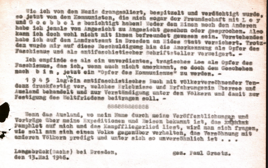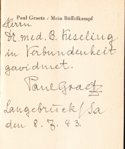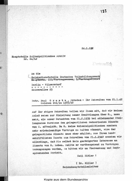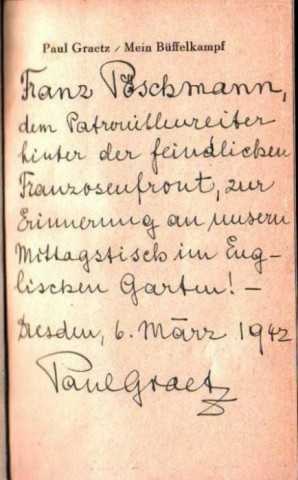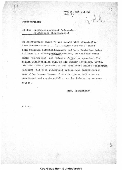 Danach hielt sich der Opportunist Graetz eine zeitlang zurück mit seinen Äußerungen und er erhielt von der Reichschriftumskammer die Erlaubnis, ein weiteres (Abenteuer) - Buch zu veröffentlichen. Zuviel "Kolonialgedöns" von Graetz durfte da aber nicht drin sein.