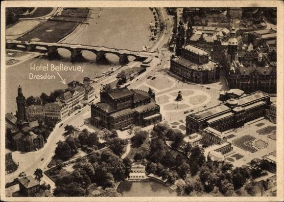 Auf der gegenüberliegenden Seite wurde dann ein neues Bellevue Hotel aufgebaut, welches heute als Bilderberg Bellevue Hotel Dresden firmiert Buchungsadresse.