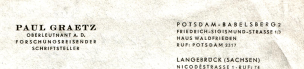 Graetz, Paul: Buntes Erleben in drei Erdteilen, Deutscher Verlag, Berlin 1938 .