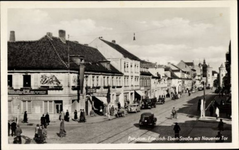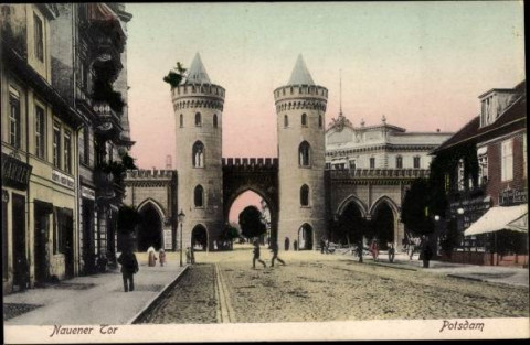 „Ich bin Paul Graetz, der Afrikaforscher und ich muß jetzt heiraten“. Der lässt beide hinten einsteigen, setzt sich nach vorne. Fahrt durch das Nauener Tor bei Potsdam. Durch die Mitte dürfen nur Generale und der Führer. Fahrt durch die Mitte des Tores.