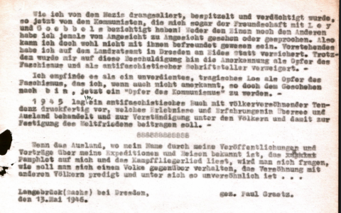 Dabei hat er allerdings unterschätzt, dass sich in den Kriegsjahren keiner mehr für seine "ollen Kamellen" interessierte. Nichtsdestotrotz suchte er um eine Genehmigung ein, die erst einmal abgelehnt wurde, da Graetz sich "wiederholt rednerische Entgleisungen zuschulden kommen" ließ, sprich, bei diesen Gelegenheiten gegen die Nazis wetterte. Daher hatte er vorerst Auftrittsverbot.